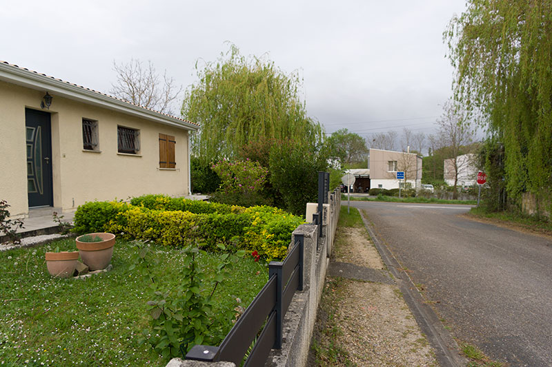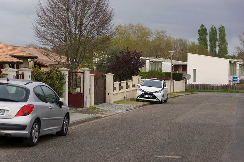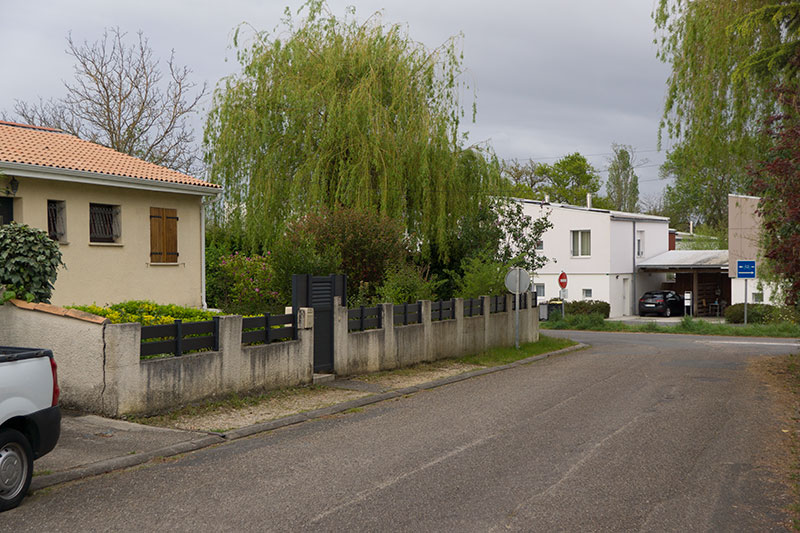 En tout cas, ces 64 premiers logements sociaux limitent le grignotage des espaces agricoles (des pavillons auraient été plus envahissants), encore largement présents (les terrains utilisés sont des prés qui dépendaient de l'ancien manoir de La Motte - aussi appelé château Modery -, en cours de rachat par la commune en 2022 (2) ). C'est un effort de "densification" dans une zone déjà marquée par un habitat pavillonnaire planté "au milieu des champs". Un effort de densification qui semble même avoir gommé la règle du COS : nous sommes en zone UC et le règlement de cette zone prévoit un COS de 0,30 pour les « constructions à usage locatif social bénéficiant d'un concours financier de l'État ». Il n'est donc pas possible de construire une surface de plancher - hors garage - de plus de 30 m² sur un terrain de 100 m². Quand on voit l'espace occupé par ces logements à étage (une vue aérienne en donne une bonne idée), on peut tout de même s'interroger sur le respect du COS... Quant à la qualité architecturale du projet et son intégration dans l'environnement naturel, chacun appréciera... L'impression qui nous est restée est celle d'un paysage de banlieue : ensemble assez hétéroclite de logements collectifs et d'habitat pavillonnaire où le seul point commun est l'existence d'un toit posé sur des murs. Heureusement, les arbres font un peu diversion...
